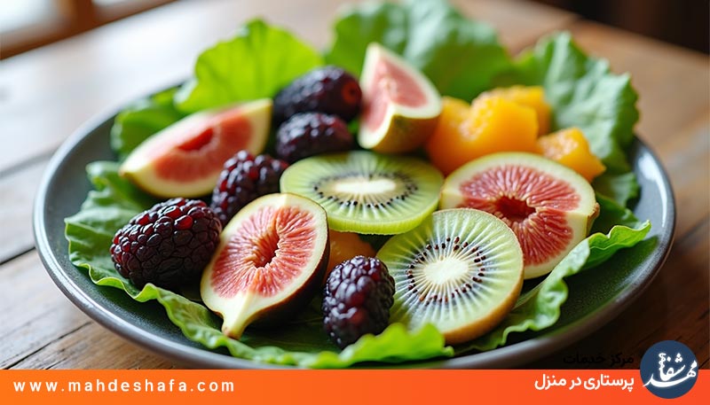 میوههای فیبردار و آبدار مثل کیوی، پرتقال و آلو