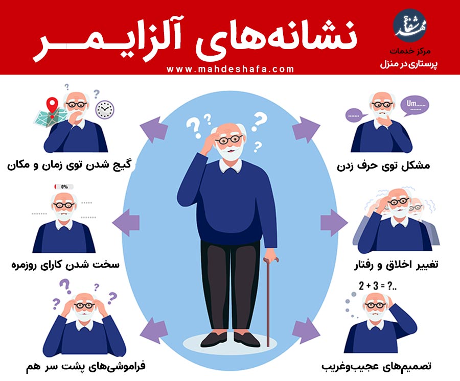• فراموشی و سردرگمی: ممکنه اسم تو رو یادش نیاد، مسیر خونه رو گم کنه یا ناگهان از خونه بیرون بره.