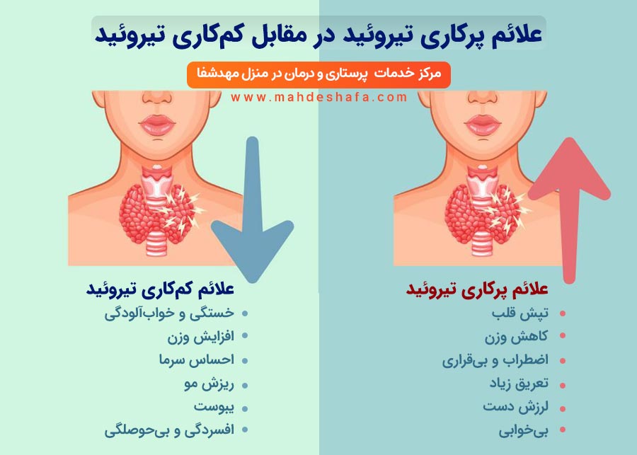 برعکسش وقتی تیروئید پرکار میشه، بدن زیادی میره رو دور تند! انگار پدال گاز گیر کرده و نمیذاره بدن آرام بگیره. اینجا معمولاً با چنین چیزهایی روبهرو میشیم: